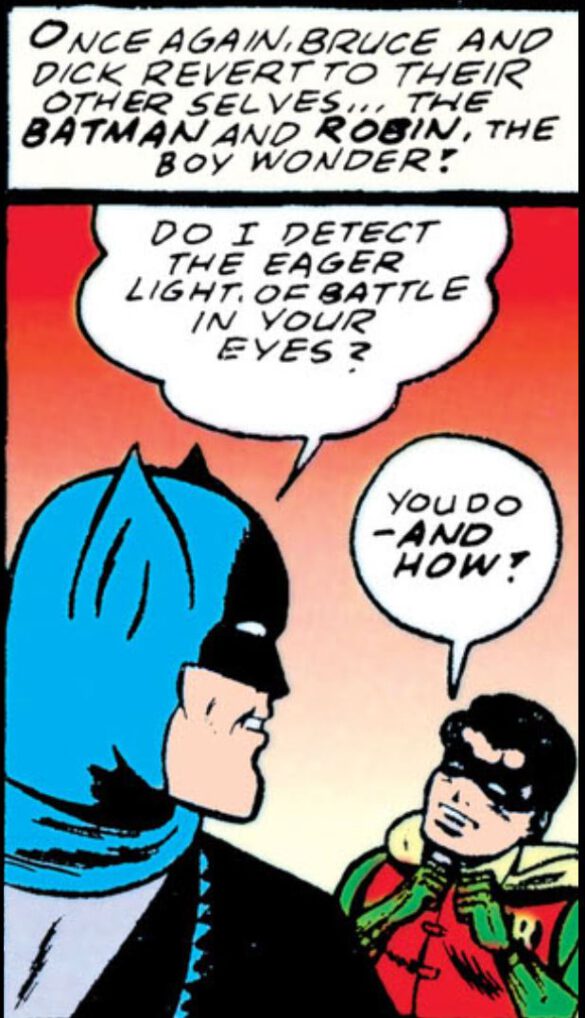 - “Bruce Wayne wore pajamas and dressing gown around his house; he sat on the same sofa or couch as his youthful ward; Dick often sat at Bruce’s bedside when his guardian was injured or ill.”
